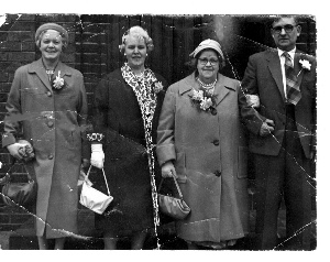 Aunty Emma, Mum, Granny Evans and Dad at a wedding.